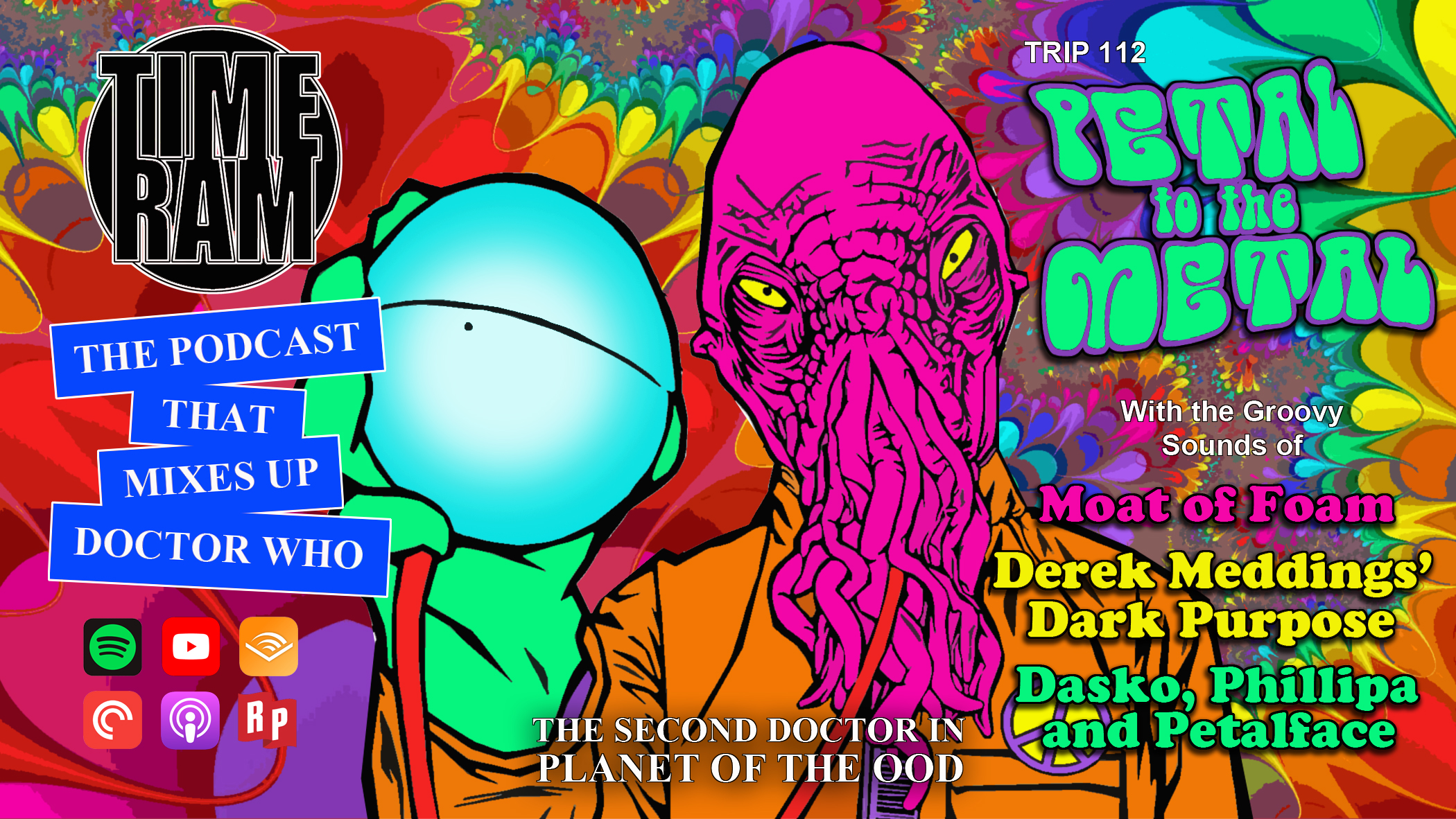 Time Ram gets Progressive on the Planet of the Ood, with the Second Doctor, Jamie and Victoria grooving out to the heady vibes of Moat of Foam, Derek Meadings’ Dark Purpose and Dasko, Phillipa & Petalface. Where did all this foam come from? And why is Nora Batty so unhappy about having to clean it all up? Find out… if you dare!